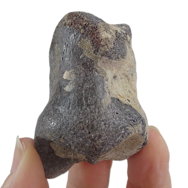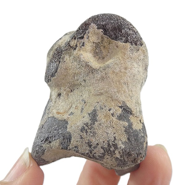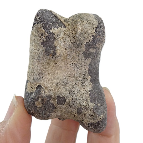Falange media del dedo de bisonte estepario cubierto de briozoos.