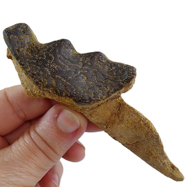 Placa dentaria de un Dipnoo o pez pulmonado. En la boca del pez, esta pieza estaba orientada de forma que las excrecencias miraban hacia afuera.