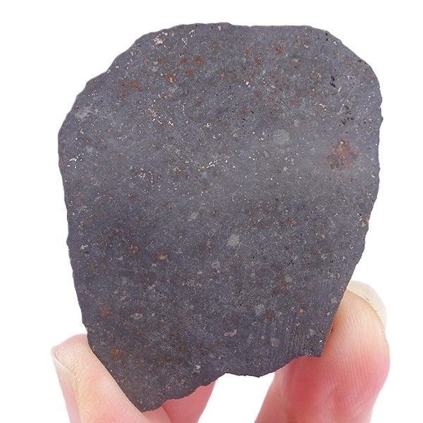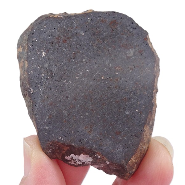 Sección cortada y pulida de una condrita. Se trata de un meteorito rocoso que ha sido preparado para revelar su estructura interna única, especialmente las pequeñas esferas, llamadas cóndrulos, compuestas principalmente de silicatos (como olivino y piroxeno) y a veces metales, siendo los componentes más antiguos del Sistema Solar.