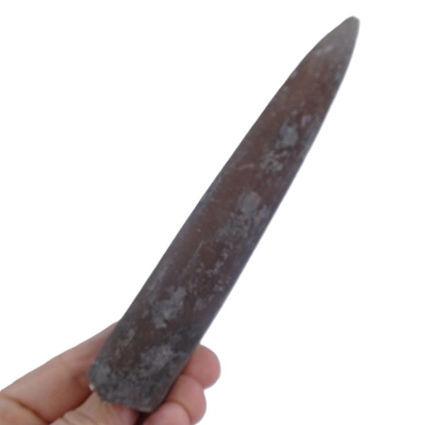 El rostro es una pieza maciza que suele encontrarse fosilizada, de forma normalmente cilíndrica, que acababa en una punta aguda o redondeada. Esta forma recuerda a una bala y tenía una función de contrapeso. El rostro posee un hueco cónico en el extremo opuesto a la punta – el alveolo – donde se inserta la parte tabicada del esqueleto, que es el denominado fragmocono.