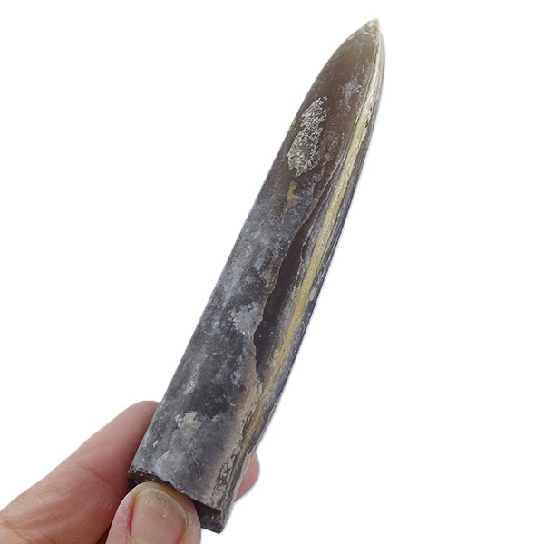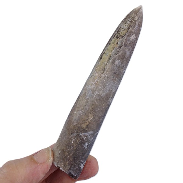 El fragmocono de los belemnites es reducido, recto y se extiende un poco más allá del alveolo. Este cono tabicado tiene los septos muy próximos unos de otros y es atravesado por el sifón. El fragmocono está formado de un mineral llamado aragonito, el mismo que forma las conchas de ammonoideos y nautiloideos, sin embargo, el rostro del belemnite está formado por mineral de calcita. Este último es más estable que el aragonito lo que explica que el rostro de los belemnites se encuentre fosilizado en abundancia mientras que el fragmocono es raro. Además, el rostro es macizo mientras que el fragmocono es mayormente hueco. En las secciones de trozos quebrados del rostro se pueden observar los cristales de calcita en posición radial y algunos anillos concéntricos de crecimiento.
