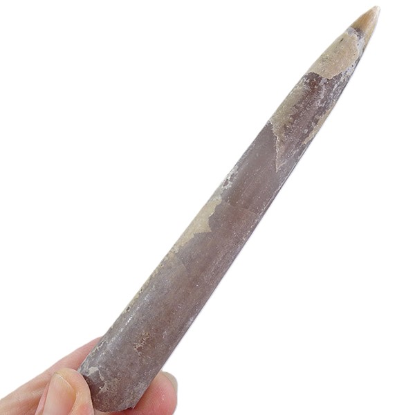 El fragmocono de los belemnites es reducido, recto y se extiende un poco más allá del alveolo. Este cono tabicado tiene los septos muy próximos unos de otros y es atravesado por el sifón. El fragmocono está formado de un mineral llamado aragonito, el mismo que forma las conchas de ammonoideos y nautiloideos, sin embargo, el rostro del belemnite está formado por mineral de calcita. Este último es más estable que el aragonito lo que explica que el rostro de los belemnites se encuentre fosilizado en abundancia mientras que el fragmocono es raro. Además, el rostro es macizo mientras que el fragmocono es mayormente hueco. En las secciones de trozos quebrados del rostro se pueden observar los cristales de calcita en posición radial y algunos anillos concéntricos de crecimiento.