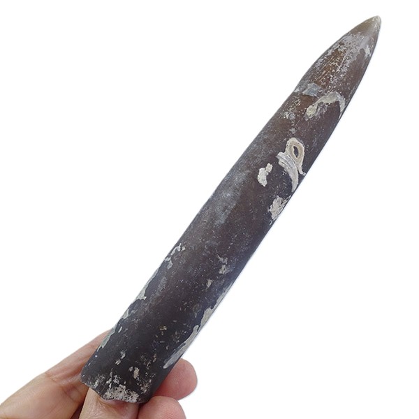 Si pudiésemos contemplar hoy a un belemnite vivo, nos recordaría a un calamar actual. El esqueleto estaba incluido en el cuerpo blando del animal (el manto) de manera que el rostro estaba en un extremo y ocupaba aproximadamente un tercio de su longitud. Servía de contrapeso de los órganos, cabeza y brazos de manera que el animal podía adoptar la posición horizontal sin esfuerzo.