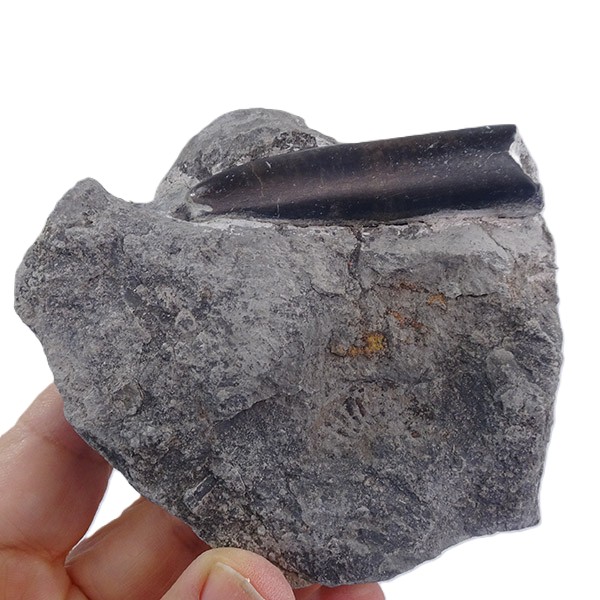 Si pudiésemos contemplar hoy a un belemnite vivo, nos recordaría a un calamar actual. El esqueleto estaba incluido en el cuerpo blando del animal (el manto) de manera que el rostro estaba en un extremo y ocupaba aproximadamente un tercio de su longitud. Servía de contrapeso de los órganos, cabeza y brazos de manera que el animal podía adoptar la posición horizontal sin esfuerzo.