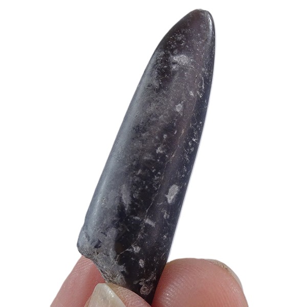 El fragmocono de los belemnites es reducido, recto y se extiende un poco más allá del alveolo. Este cono tabicado tiene los septos muy próximos unos de otros y es atravesado por el sifón. El fragmocono está formado de un mineral llamado aragonito, el mismo que forma las conchas de ammonoideos y nautiloideos, sin embargo, el rostro del belemnite está formado por mineral de calcita. Este último es más estable que el aragonito lo que explica que el rostro de los belemnites se encuentre fosilizado en abundancia mientras que el fragmocono es raro. Además, el rostro es macizo mientras que el fragmocono es mayormente hueco. En las secciones de trozos quebrados del rostro se pueden observar los cristales de calcita en posición radial y algunos anillos concéntricos de crecimiento.