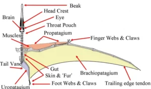 - cuarto dedo hipertrofiado, extremadamente alargado que sostenía la membrana alar (patagio) para el vuelo. Esta membrana se extendía desde el dedo hasta el cuerpo y, frecuentemente, hacia las extremidades posteriores, Esta estructura es clave para su capacidad de vuelo y postura.