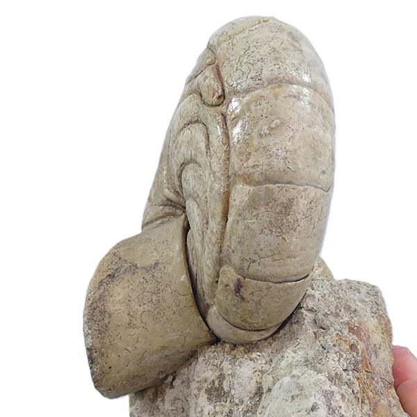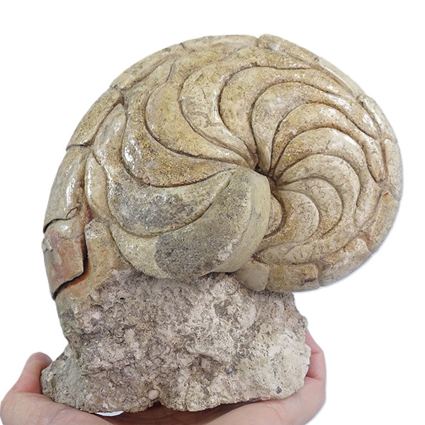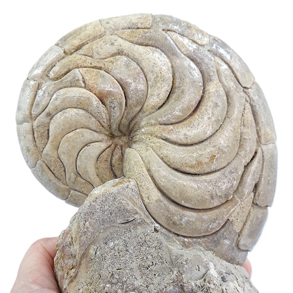 - la cabeza tentaculada, una estructura cartilaginosa en la que se encuentra la boca formada por un pico córneo y un número variable de téntaculos, identificándose más de 90 en los nautiloideos actuales. Los ojos ocupan una posición lateral y simétrica en la cabeza. En la parte dorsal tiene un tejido duro, el capuchón, que le sirve de protección contra los depredadores. Debajo de los tentáculos está el hiponoma o sifón, que consiste en una estructura larga y tubular que puede ser orientada en cualquier dirección.