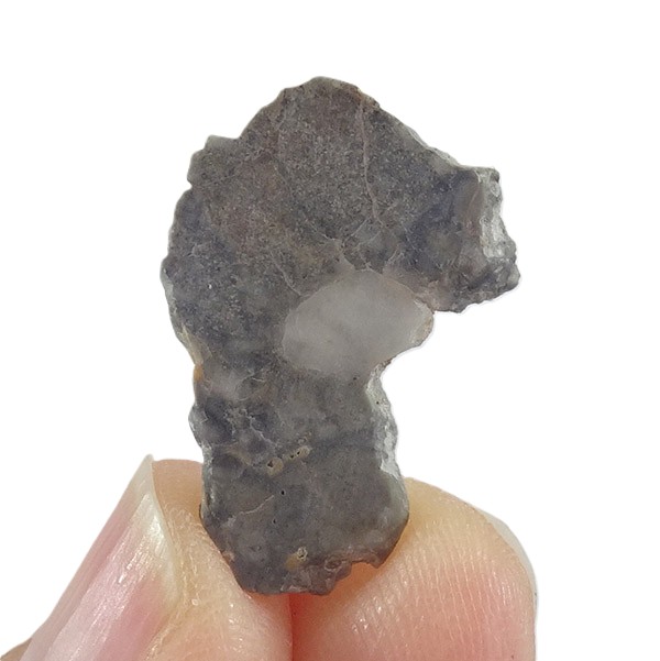 Brecha de fundido compuesta por clastos grisáceos-verdosos engastados en una matriz de roca fundida rica en anortita, que presenta texturas de flujo y temple pronunciadas, con pequeños cristales aciculares que nuclean sobre granos minerales arrastrados de mayor tamaño. Las fases principales son pigeonita, augita frecuentemente zonada y, en menor cantidad, olivino. Las fases menores incluyen ilmenita, cromita y troilita.