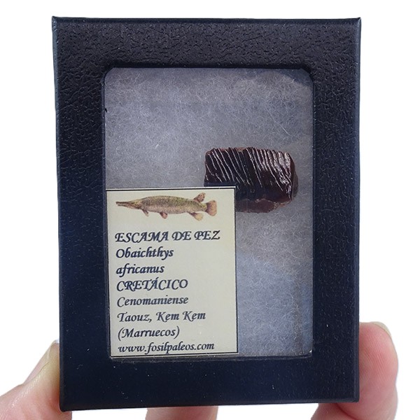 Escama de pez Lepisosteiforme (peces con aletas radiadas).