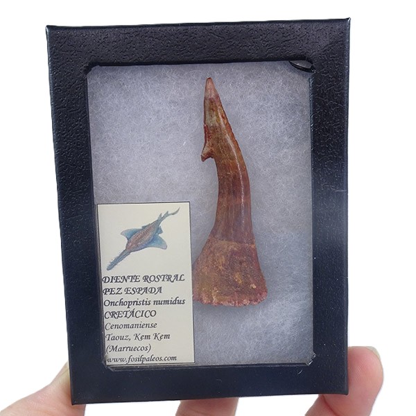 Onchopristis presentaba una protuberancia semejante a la del actual pez espada y a ambos lados se disponían los dientes de mayor a menor tamaño.