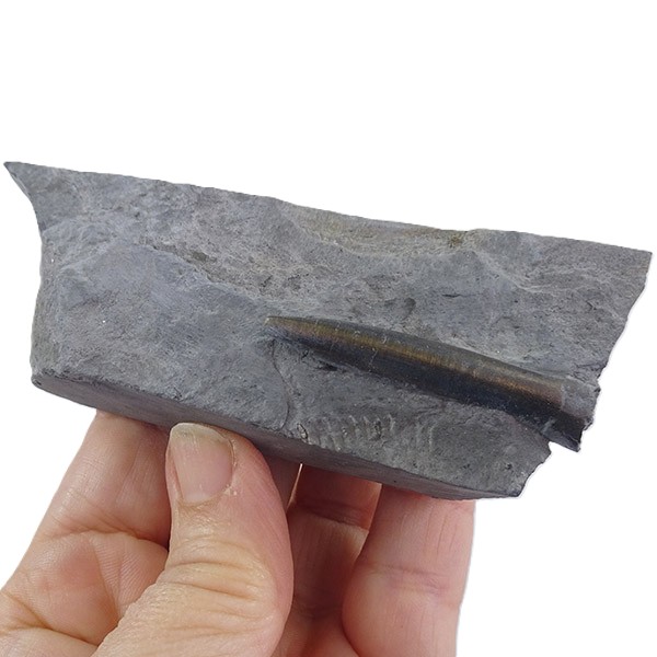 Los belemnites poseían un esqueleto interno robusto. La concha consta de tres partes bien diferenciadas que son: el rostro, el fragmocono y el prostraco.
