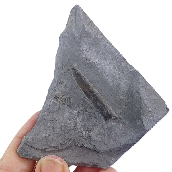 Si pudiésemos contemplar hoy a un belemnite vivo, nos recordaría a un calamar actual. El esqueleto estaba incluido en el cuerpo blando del animal (el manto) de manera que el rostro estaba en un extremo y ocupaba aproximadamente un tercio de su longitud. Servía de contrapeso de los órganos, cabeza y brazos de manera que el animal podía adoptar la posición horizontal sin esfuerzo.