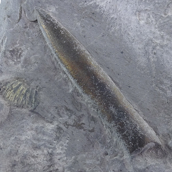 La tercera parte del esqueleto – el prostraco – es una prolongación lateral del fragmocono y es aún más rara su conservación. Es la parte vestigial de la cámara de habitación que constituía un apoyo y protección para los órganos del animal.