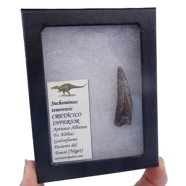 Suchomimus tenerensis ("imitador de cocodrilo de Teneré”). El cráneo alargado y poco profundo de Suchomimus, similar al de un cocodrilo, le otorga su nombre genérico, mientras que el nombre específico S. tenerensis alude a la localidad donde fueron encontrados sus primeros restos, el desierto del Teneré.